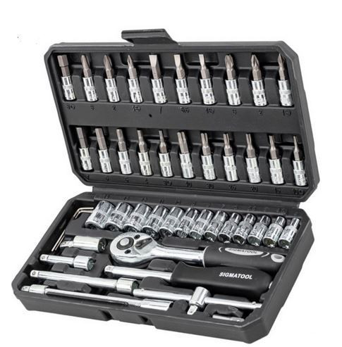Racsnis dugókulcs és bitfej készlet 1/4 coll, 46 db-os, műanyag kofferben