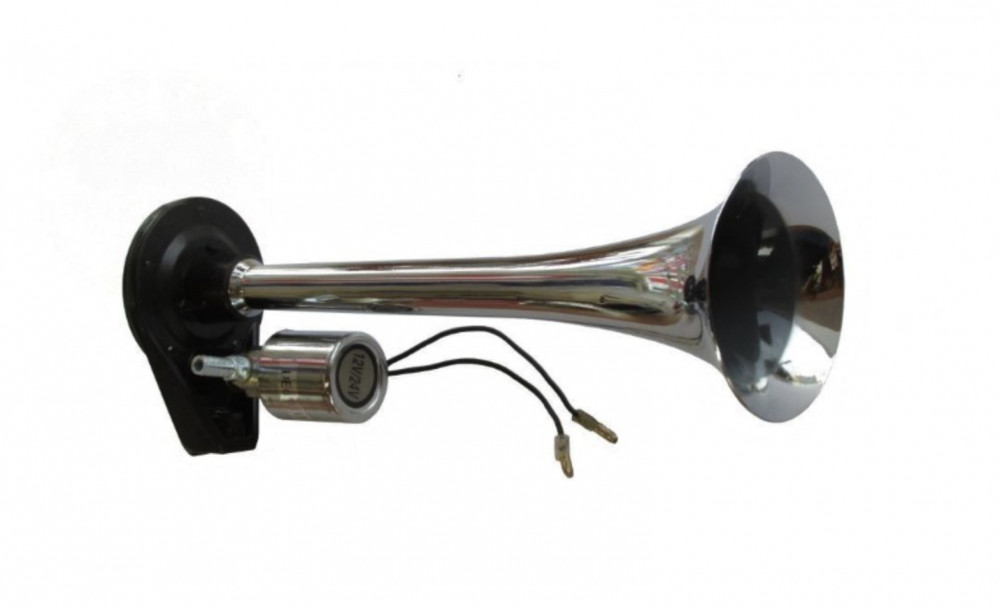 Króm légkürt elektromos szeleppel, kerek tányérral.