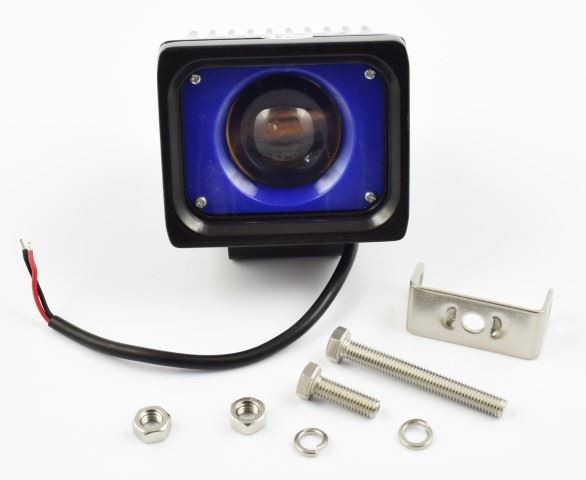 Speciális munkalámpa nagyon erős KÉK fénnyel, felrögzítést biztosító szerelvénycsomaggal együtt.