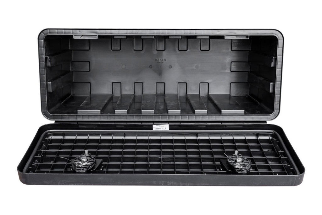 Víz és por ellen hermetikusan szigetelt, zárható műanyag szerszámos láda.